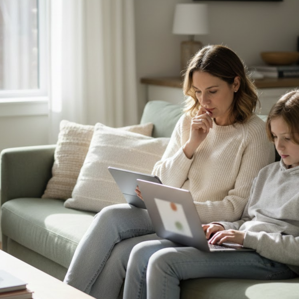 Working parents manage child device issues during work hours